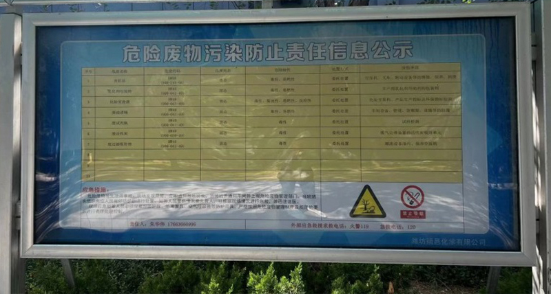 我濰坊碩邑化學(xué)有限公司現(xiàn)有危險(xiǎn)廢物八種,分別為廢活性炭(HW49 900-039-49)、乳化劑等助劑包裝物(HW49 900-041-49)、油漆桶(HW49 900-041-49)、廢試劑瓶(HW49 900-041-49)、化驗(yàn)室廢液(HW49 900-047-49)、廢機(jī)油桶(HW08 900-249-08)、廢機(jī)油(HW08 900-214-08)、廢過(guò)濾吸附物(HW49 900-041-49)。